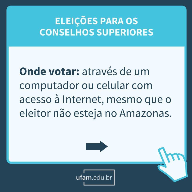 Onde votar: através de um computador ou celular com acesso à Internet. Mesmo que o eleitor não esteja no Amazonas.